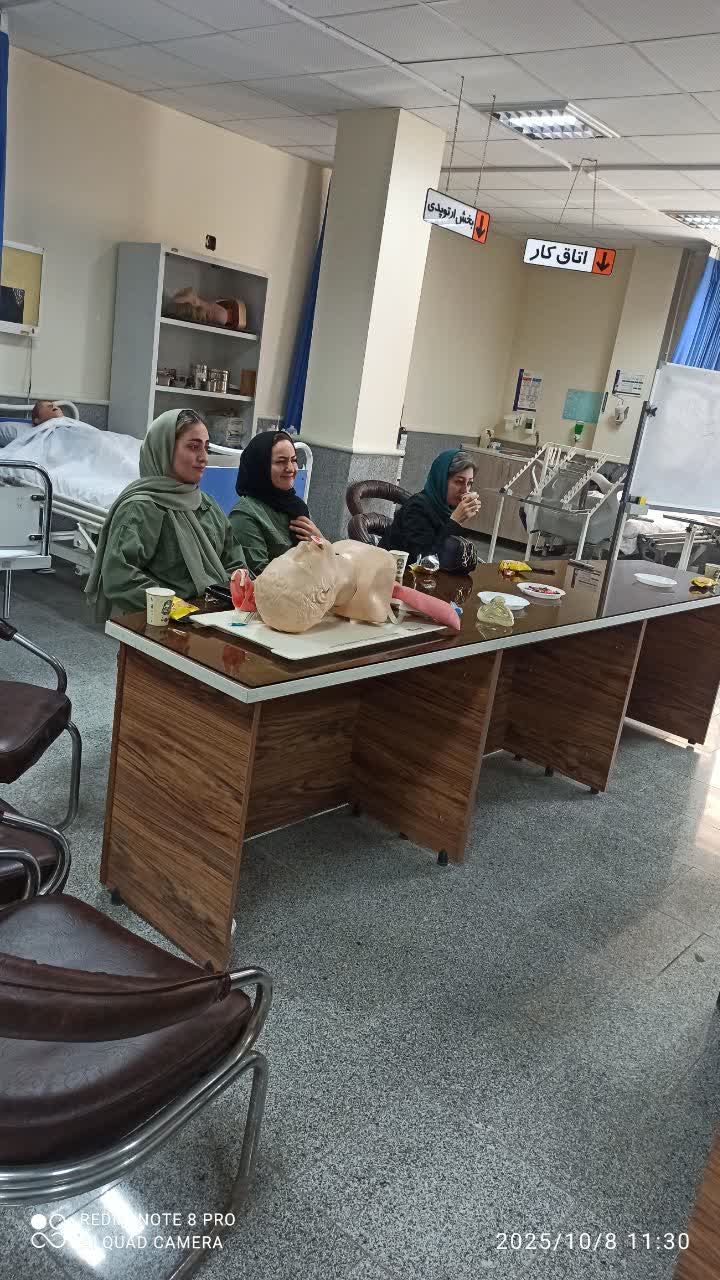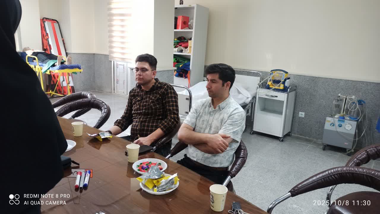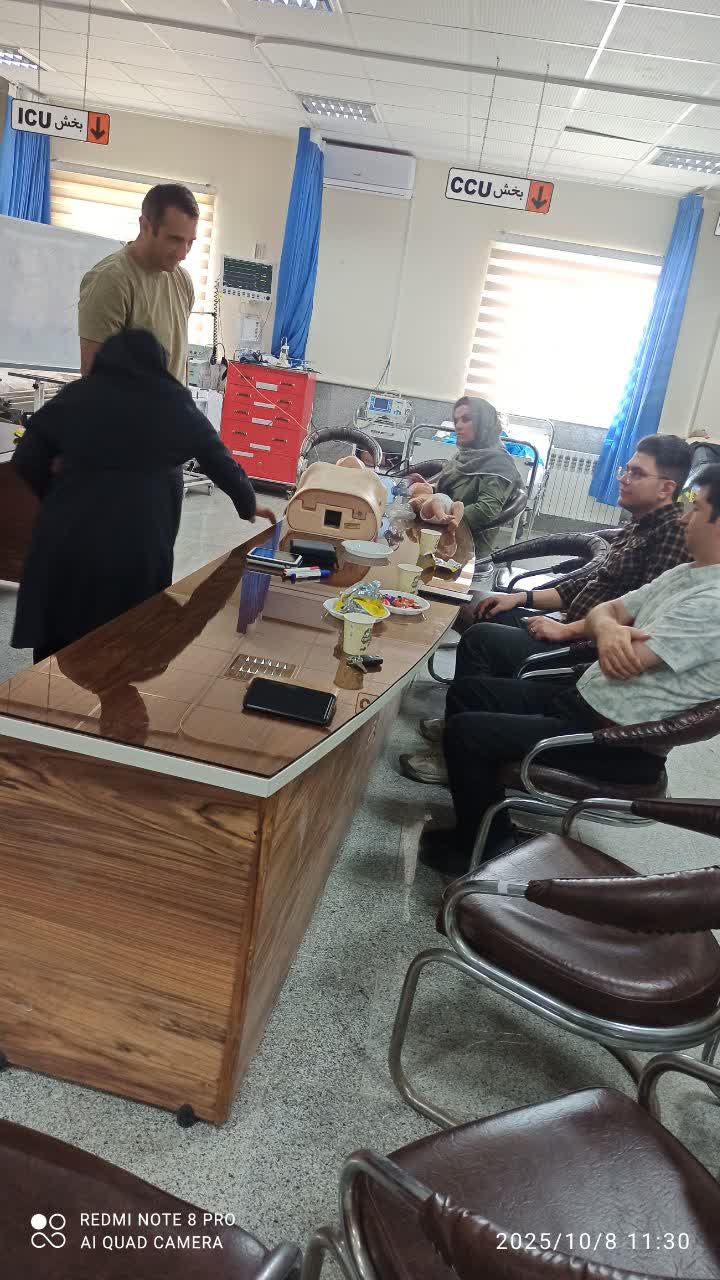 و در پایان تک تک همکارن بر روی ماکت هوشمند به صورت گروههای دو نفره ، ماشاژ قلبی داده و آمبوبگ زدند ، سپس عملکرد هر گروه ، بر اساس ثبت وضعیت احیا قلبی و ریوی ، تجزیه و تحلیل و مواردی که نیاز به اصلاح داشت توسط دکتر قادری ایراد شد