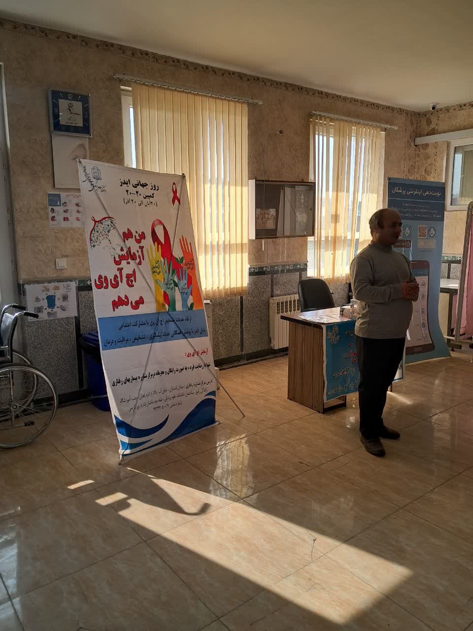 به گزارش سوپروایزر آموزش سلامت ، به مناسبت روز جهانی ایدزآموزش همگانی آگاهی در مورد بیماری ایدز با دعوت از کارشناسان معاونت بهداشتی در محل سالن انتظار بیمارستان برگزار شد.